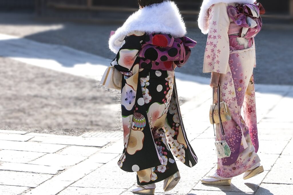 フォーマルな雰囲気を重視するなら、着物専用のショールやケープを合わせるのもおすすめ。ファーショールは軽くて暖かく、写真映えも抜群。特に白やベージュなど柔らかな色合いは、冬の京都の街並みに美しく調和します。